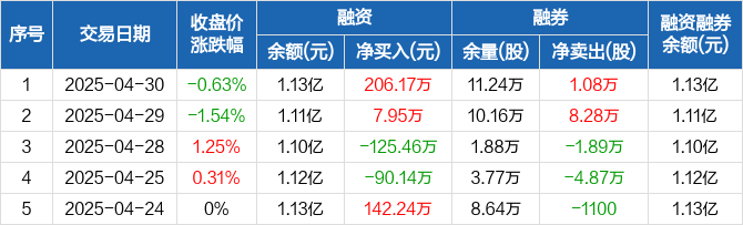 秦港股份:融资净买入206.17万元,融资余额1.13亿元(04-30)