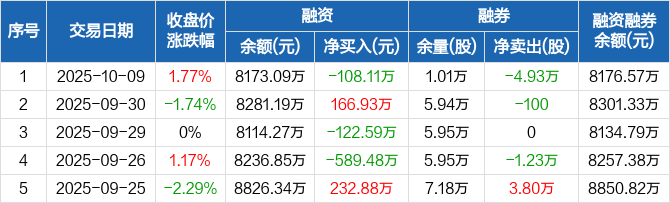 秦港股份:融资净偿还108.11万元,融资余额8173.09万元(10-09)
