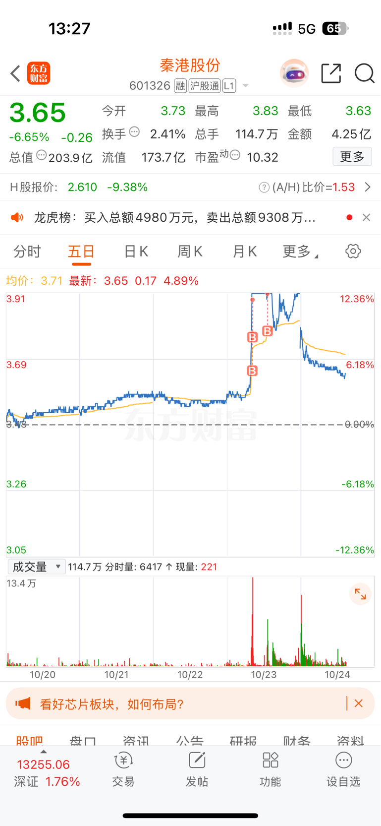 $秦港股份(SH601326)$ 服了服了,我服了,被主力打服了,老实了...