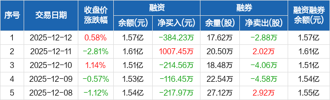 秦港股份:融资净偿还384.23万元,融资余额1.57亿元(12-12)