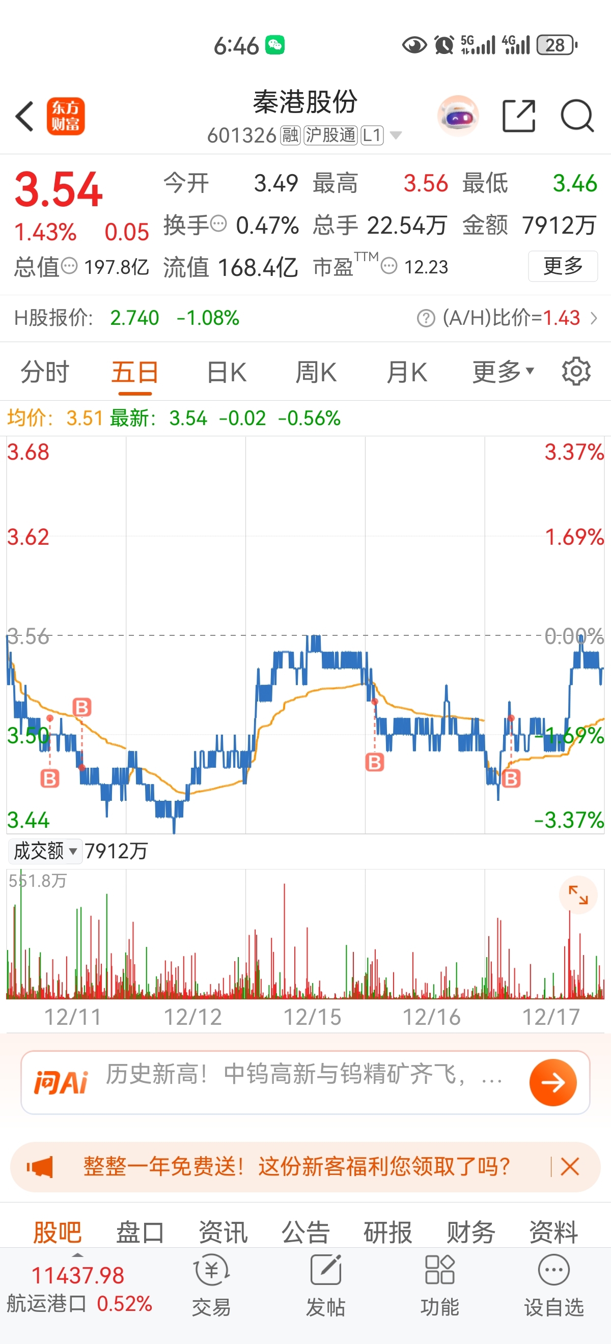 $秦港股份(SH601326)$ 问大佬要点零花钱是真难啊