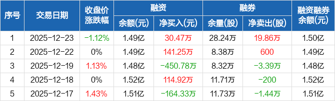 秦港股份:融资净买入30.47万元,融资余额1.49亿元(12-23)