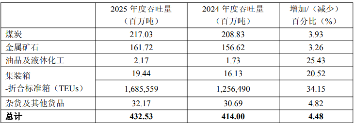 秦港股份2025年吞吐量达4.33亿吨 增长4.48%
