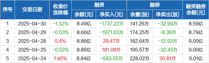 交通银行:融资净偿还1737.22万元,融资余额8.49亿元(04-30)