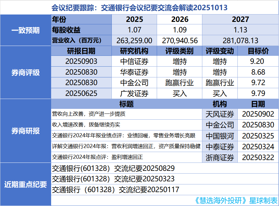 会议纪要跟踪:交通银行会议纪要交流会解读20251013