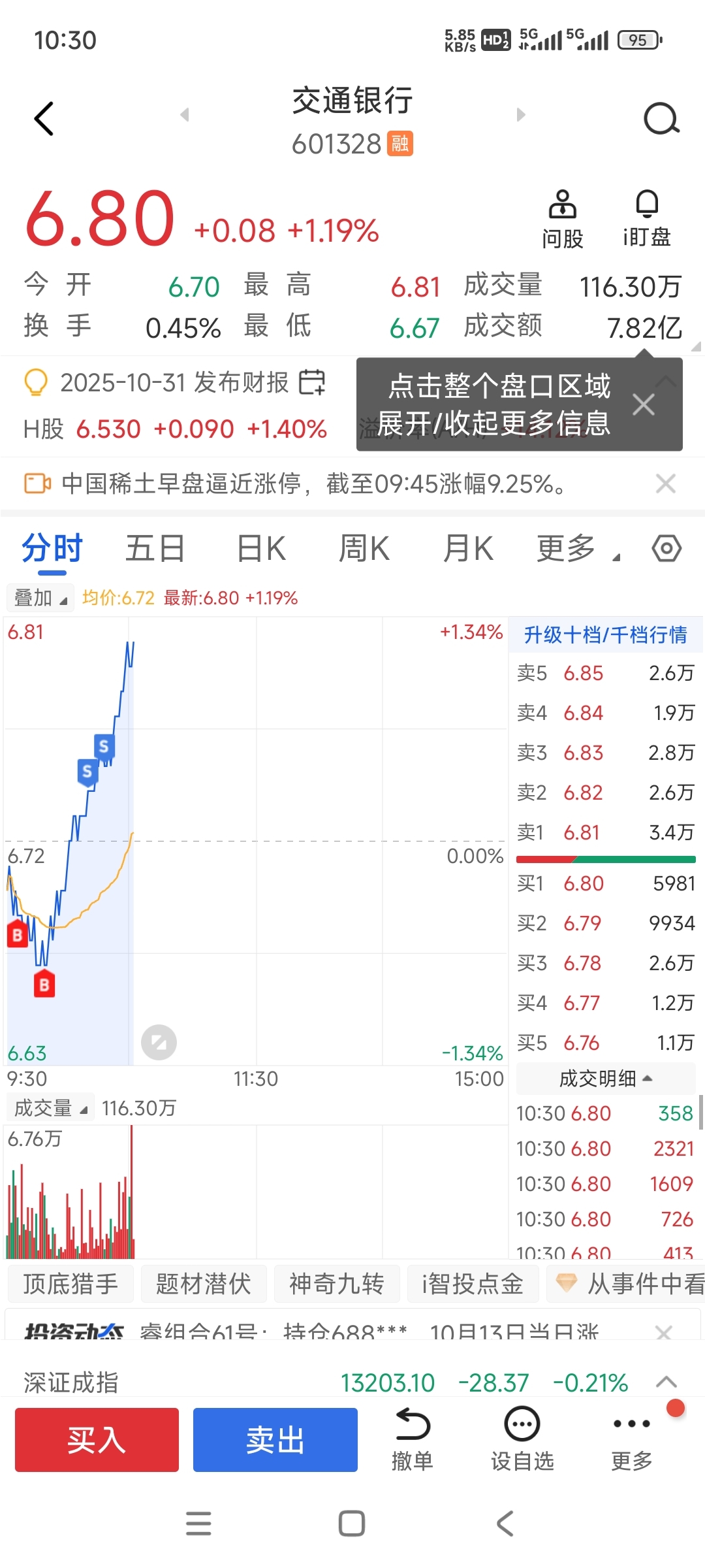 $交通银行(SH601328)$ 做了2个小T,成本降了2分钱,也行吧,就是有一点卖飞了
