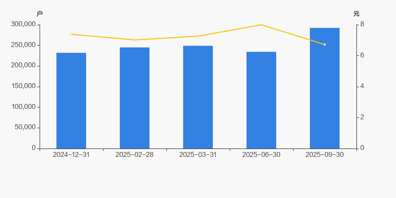 2024年12月31日至今,公司股东户数显著增长,区间涨幅为26.11%。2024年12月31日至2025年9月30日区间股价下降8.99%。