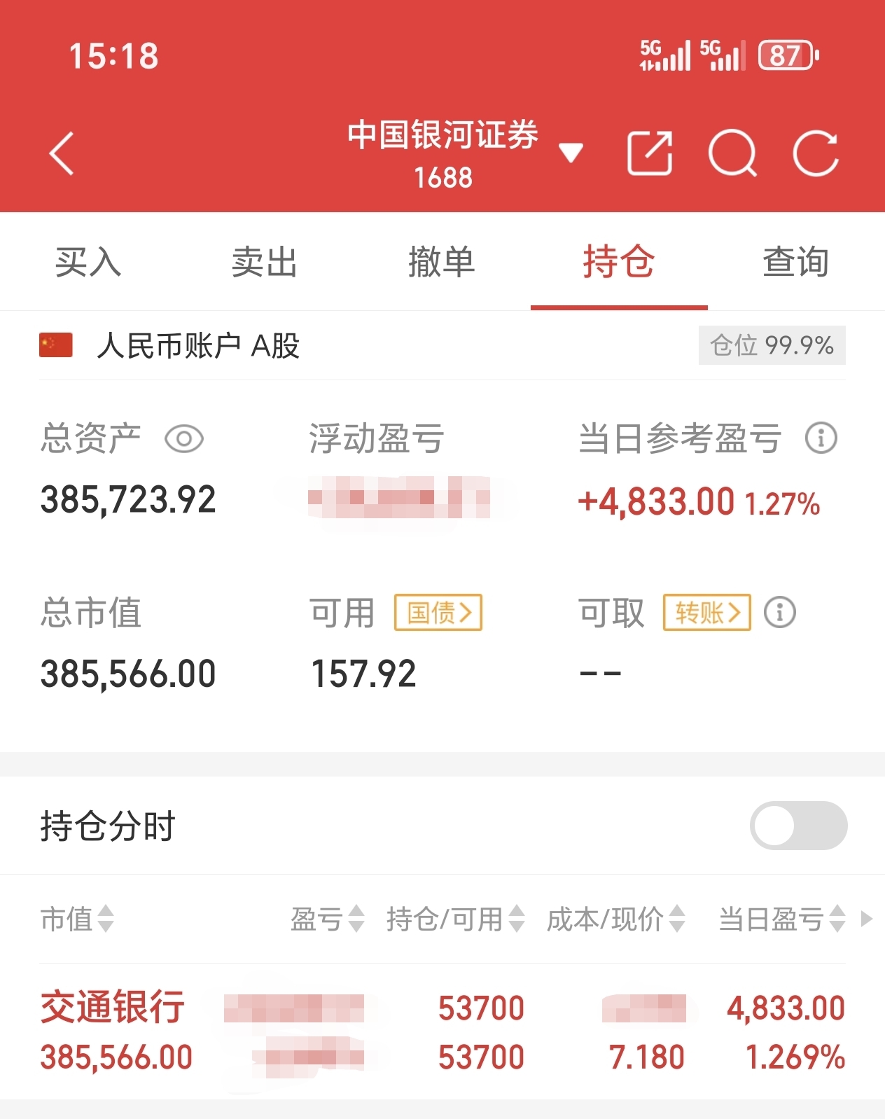 $交通银行(SH601328)$ 今天我估计t飞的人不少吧,震荡上行一步一个脚印,卖了之后都没大单砸盘让你吸回来,锁仓卧倒,主力您继续!