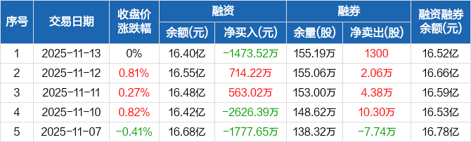 交通银行:融资净偿还1473.52万元,融资余额16.4亿元(11-13)