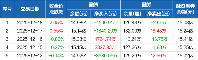 交通银行:融资净偿还1590.91万元,融资余额14.98亿元(12-18)