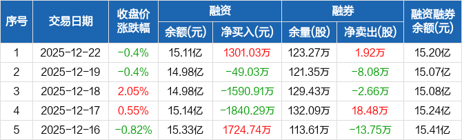 交通银行:融资净买入1301.03万元,融资余额15.11亿元(12-22)