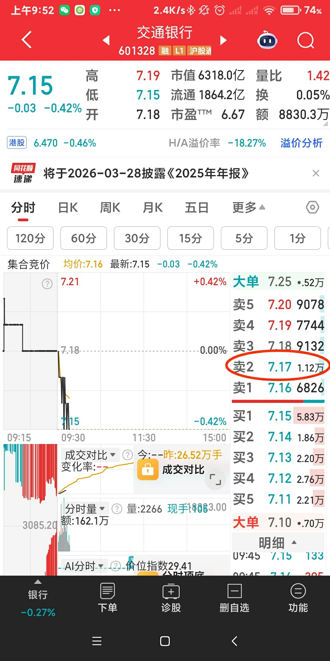 $交通银行(SH601328)$ 一会挂卖单1.17万,一会挂卖单1.02万是啥意思啊?