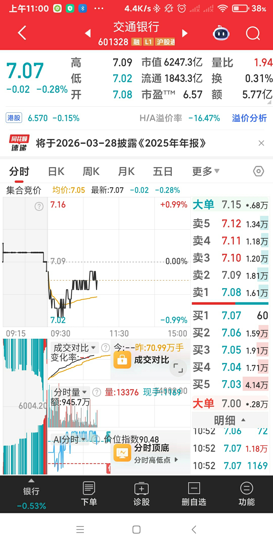 $交通银行(SH601328)$ 真金白银1.18万手?是啥个意思?