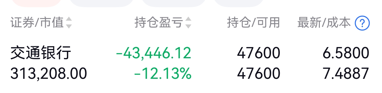 $交通银行(SH601328)$ 不想赚钱,只想回本。