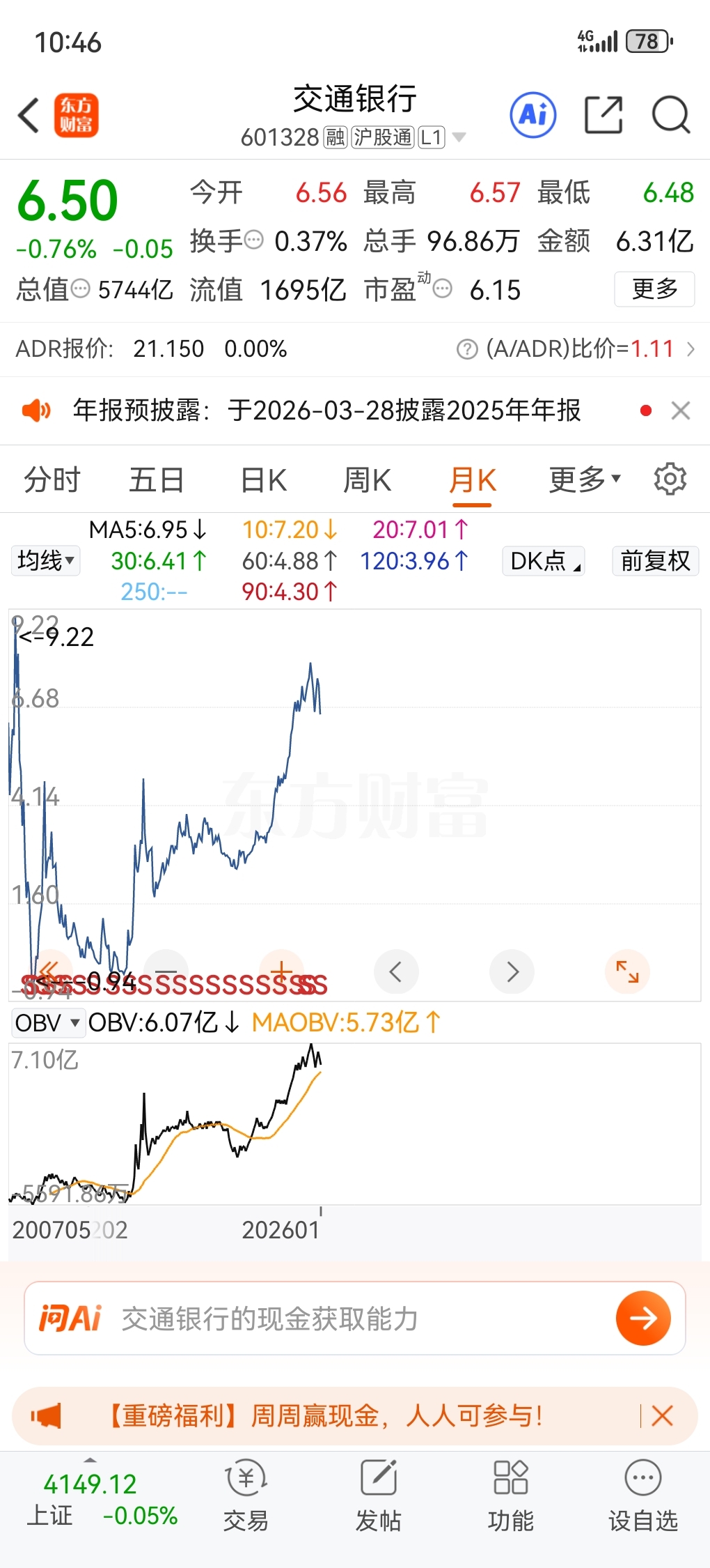 $交通银行(SH601328)$ 月线才刚开始调整