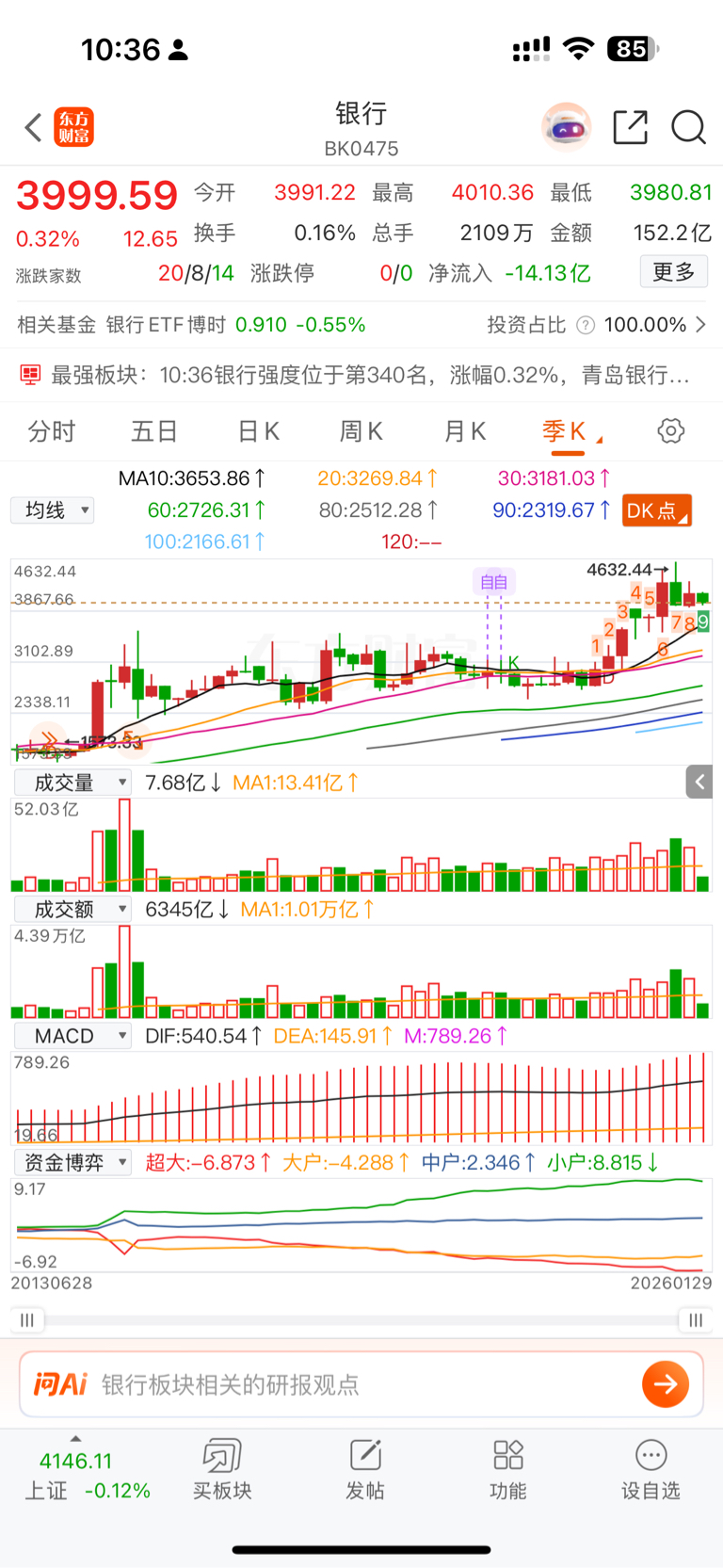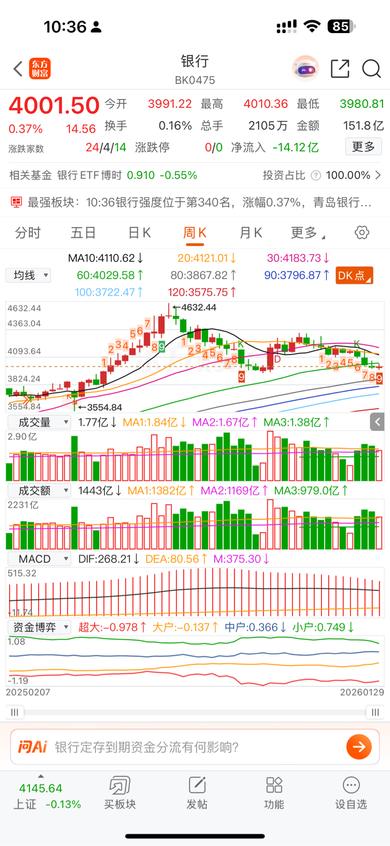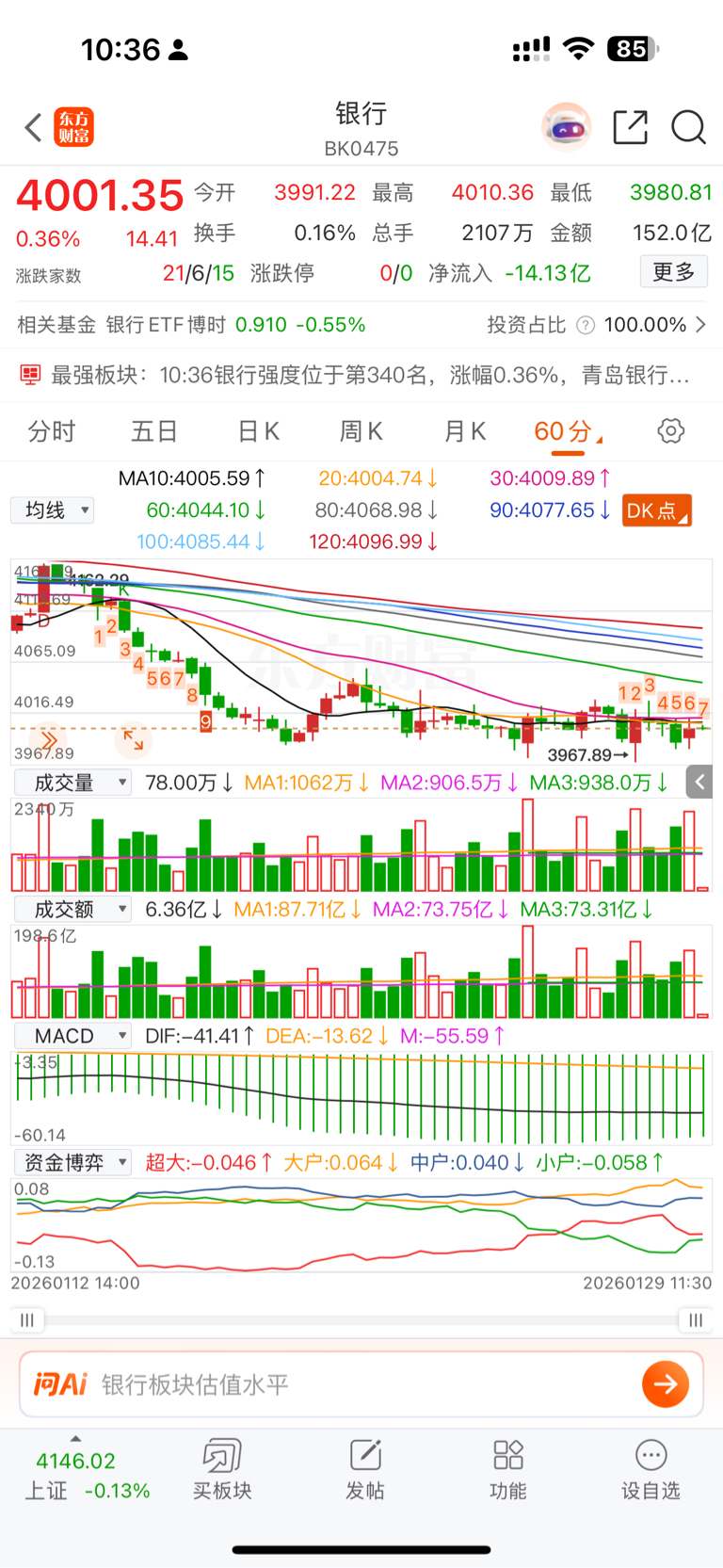 用你持有银行 vs 指数,明白不是个股是全银行行业趋势走完没