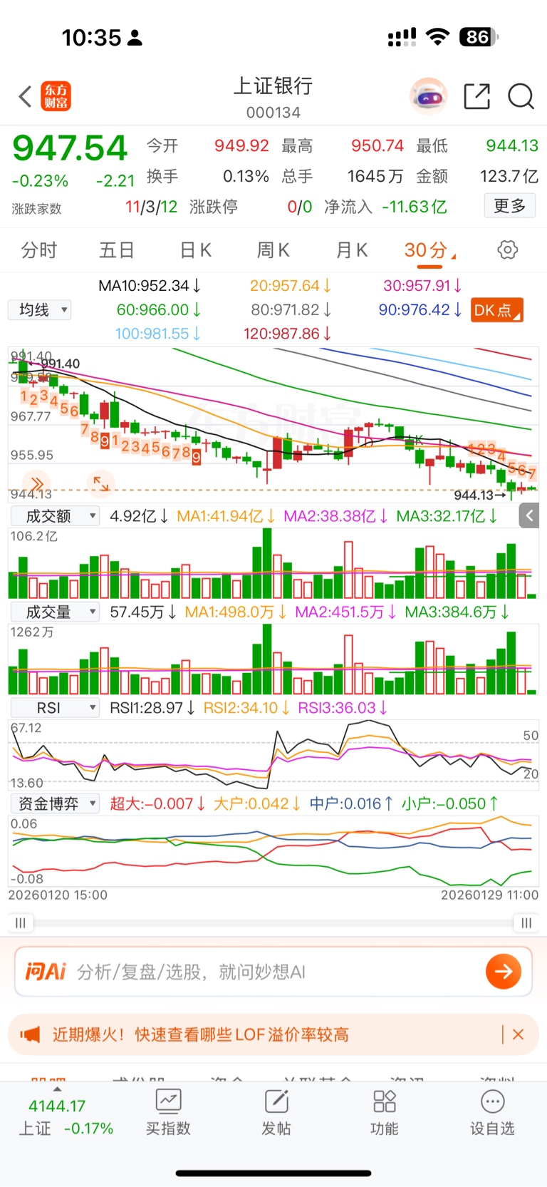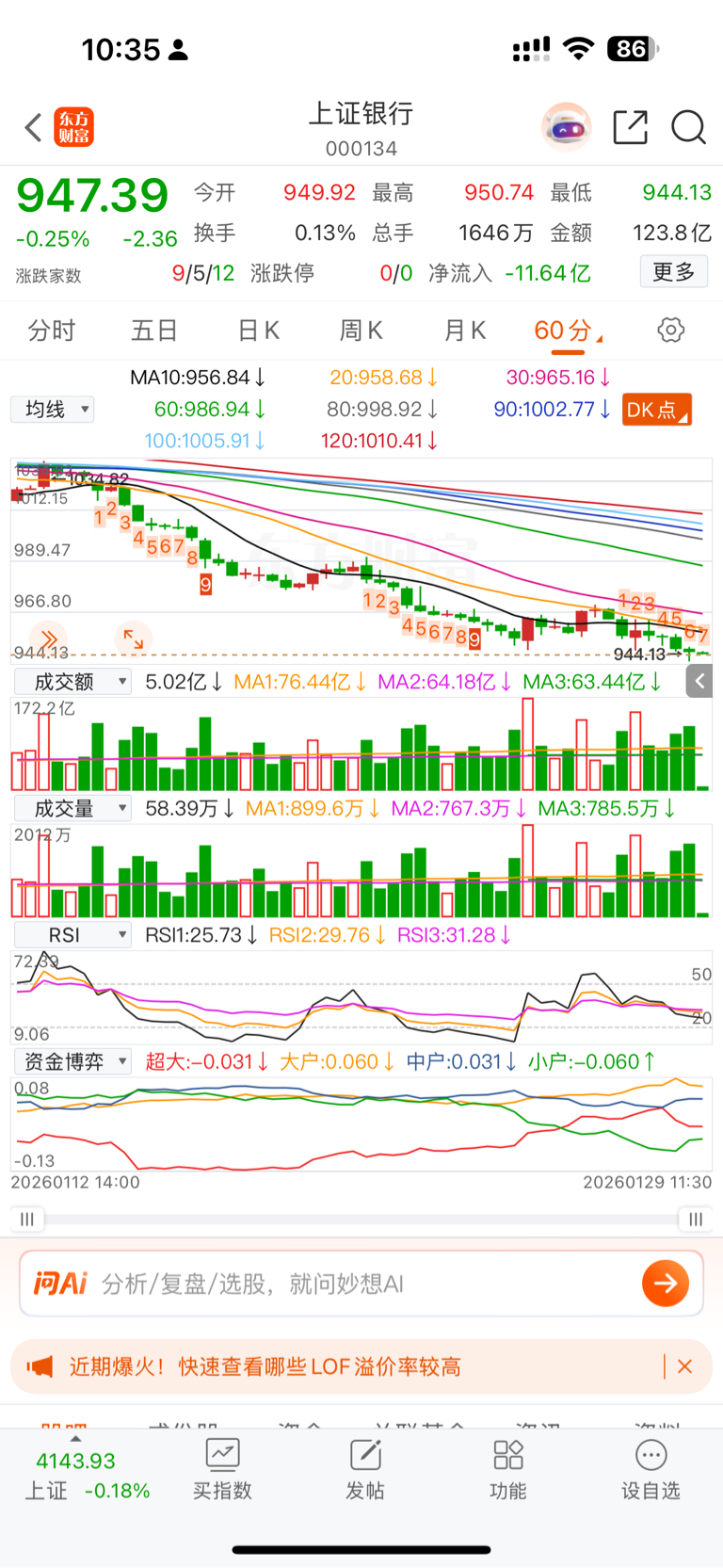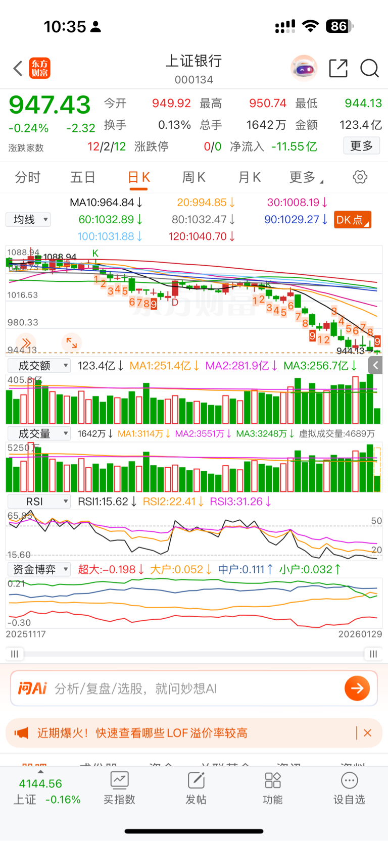 用你持有银行 vs 指数,明白不是个股是全银行行业趋势走完没
