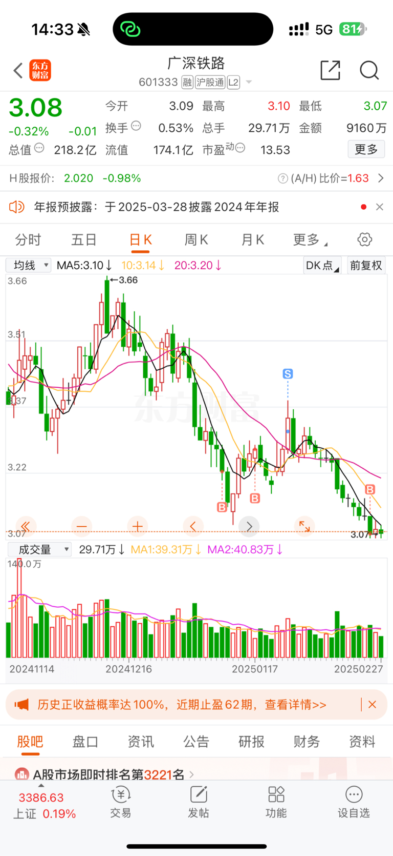 $广深铁路(SH601333)$ 年前买了点,小赚跑路了。现在准备开始抄底,奥利给,干就完了