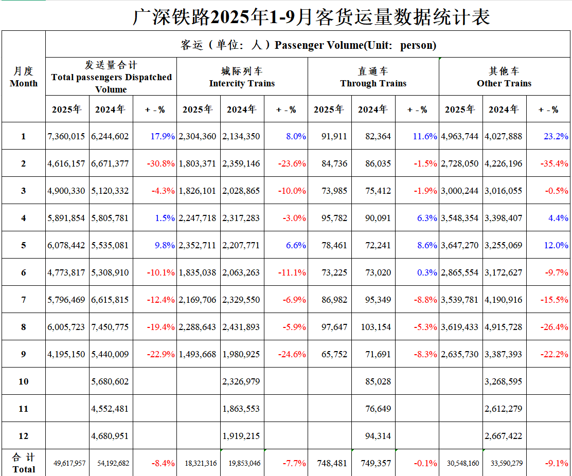 跌的原因找到了,三季度客运数据同比下跌严重,三季度财报不容乐观