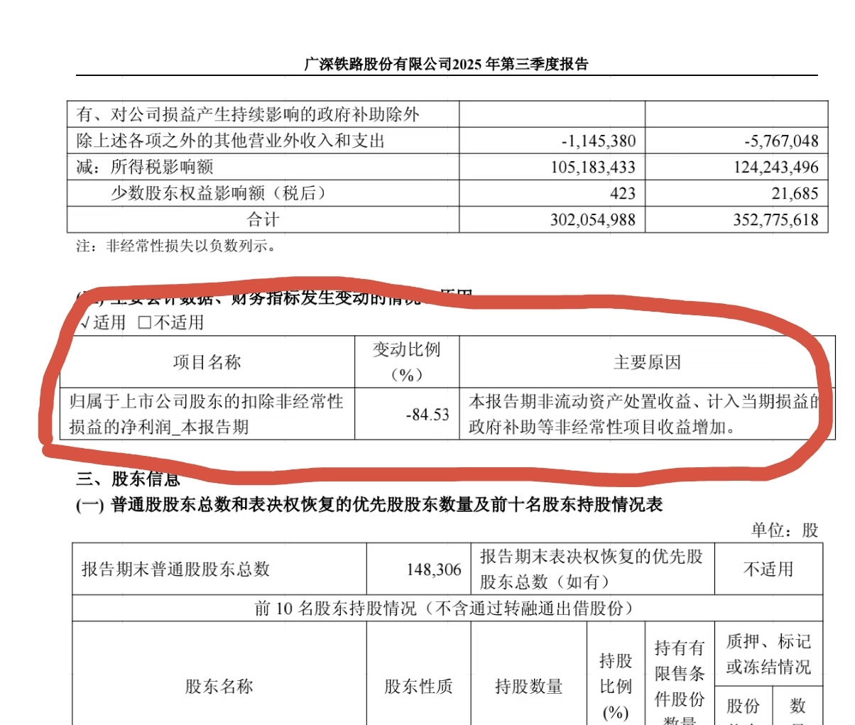 $广深铁路(SH601333)$ 谁能说说扣非大幅下降跟本期非经常性项目收益