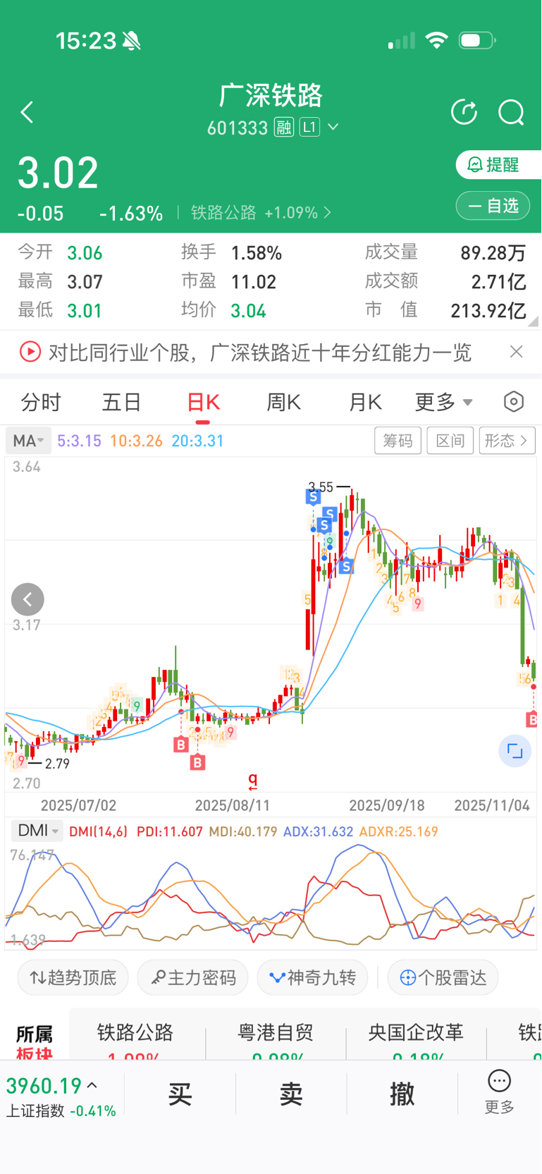 广深铁路待开发土地:紧邻深圳市洪湖公园(荷花出名)西边有个属于公司所有的笋岗客整所(占地面积约60万平方米),现罗湖区政府在推动其上盖房地产开发项目;目前周边地价是8万元左右/平方米,若项目最终落地,土地使用权可以卖约60万*8万=480亿元,考虑到是跟政府合作推动开发,就算公司每平方可获利2万元,保守估计这项目可为公司增利60万*2万=120亿元,除以股本数约71亿股,相当于每股增利1.7元左右;另外公司还有目前正在推动的广州石牌及濂溪路地块开发项目,是不是又可以来个每股增利1.7元左右;而目前的股价3元不到,此股是买是卖大家看着办吧!