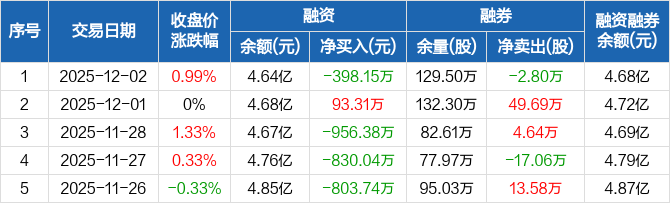 广深铁路:融资净偿还398.15万元,融资余额4.64亿元(12-02)