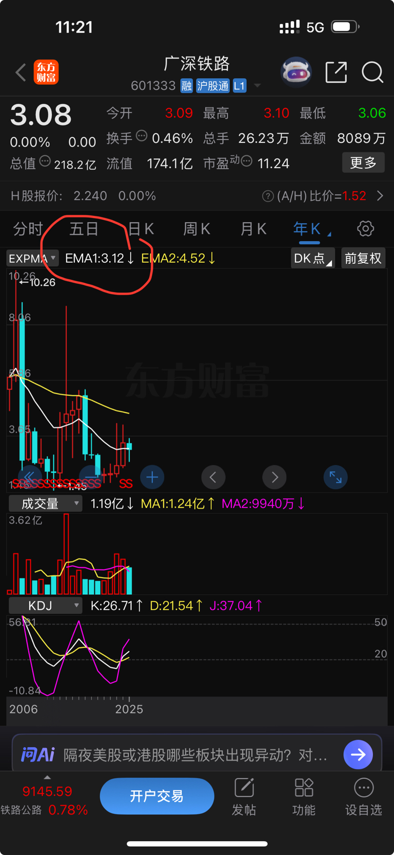 $广深铁路(SH601333)$ 看年线的均线3.12,现在这股价再磨10天,26年年初3.10附近开盘,来年就不需要再向下砸了