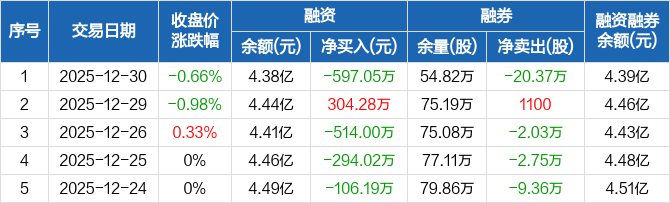 广深铁路:融资净偿还597.05万元,融资余额4.38亿元(12-30)