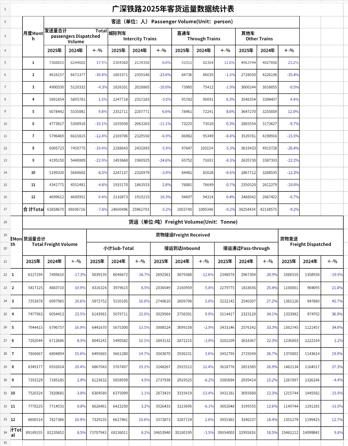 12月广深本线的客货运数据还是挺好的,都有增长!