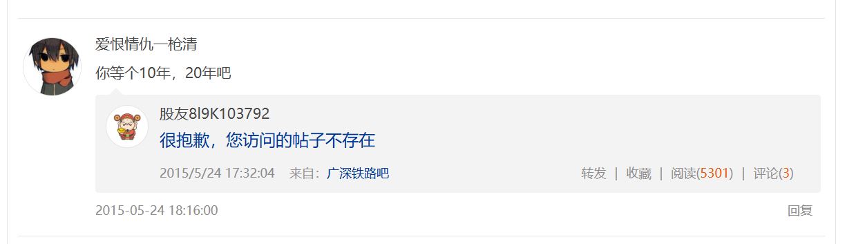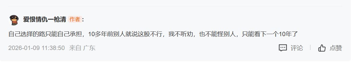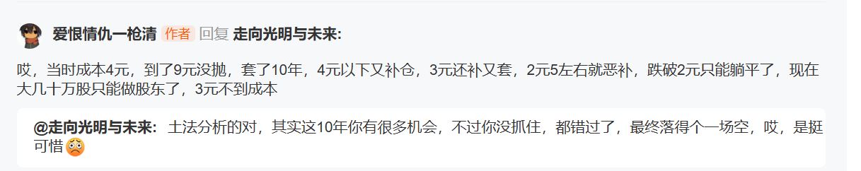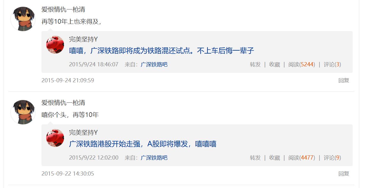 可翻看了他早期的发言,发现他早就预言了广深要等10年,并不停的对股友恐吓,你要等十年,股友们纷纷落荒而去,而一枪清独自留下踏踏实实等了10年,可等来的依然是一场空