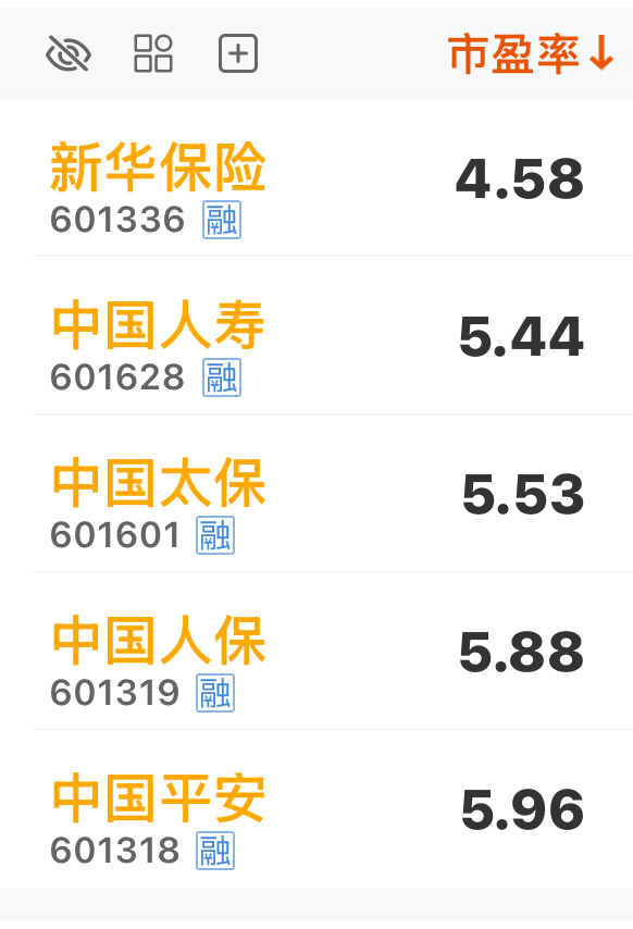$新华保险(SH601336)$ 保险股与银行股的市盈率对比