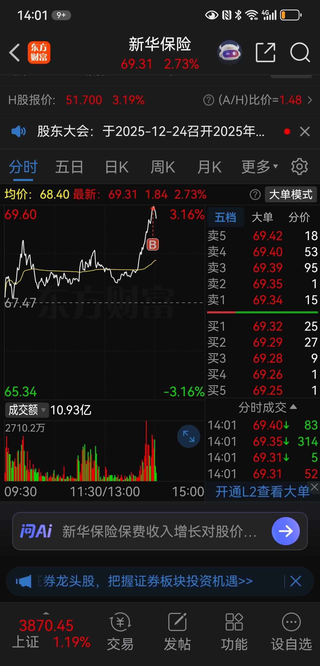 $新华保险(SH601336)$ 冲啊,站上山顶