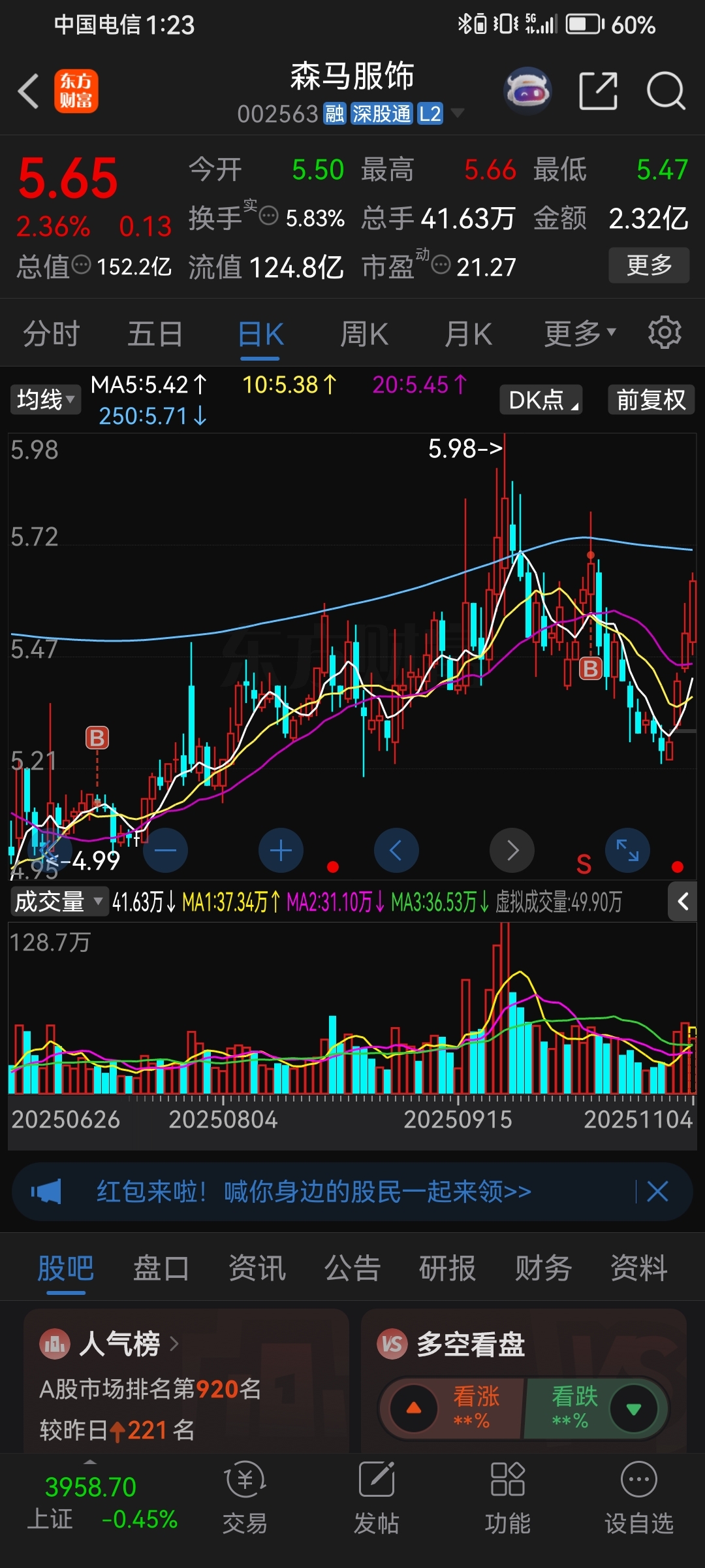 悲哀啊悲哀,和森马服饰相比差太远了。你看森马服饰确实强,上涨的速度快,下跌的慢。