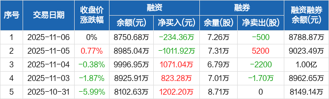 百隆东方:融资净偿还234.36万元,融资余额8750.68万元(11-06)