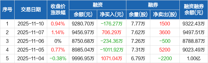 百隆东方:融资净偿还176.27万元,融资余额9280.7万元(11-10)