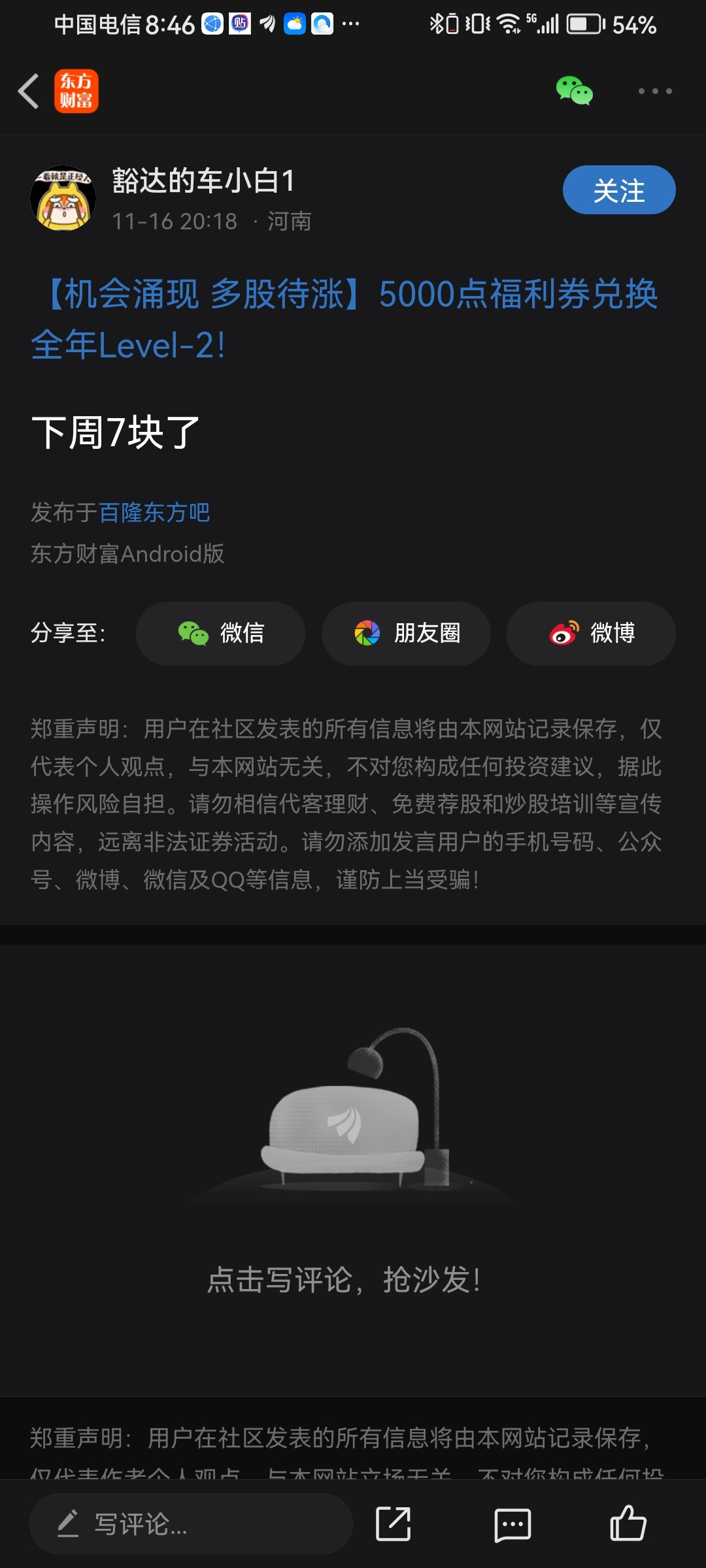 温馨提示: 1.根据《证券法》规定,禁止编造、传播虚假信息或者误导性信息,扰乱证券市场;2.用户在本社区发表的所有资料、言论等仅代表个人观点,与本网站立场无关,不对您构成任何投资建议。用户应基于自己的独立判断,自行决定证券投资并承担相应风险。《东方财富社区管理规定》