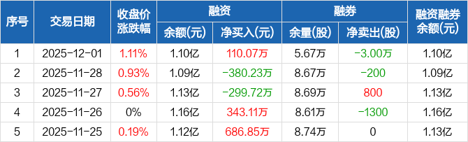 百隆东方:融资净买入110.07万元,融资余额1.1亿元(12-01)
