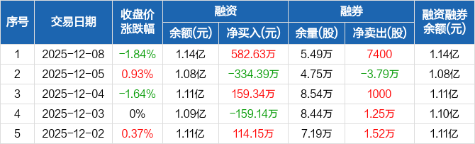 百隆东方:融资净买入582.63万元,融资余额1.14亿元(12-08)