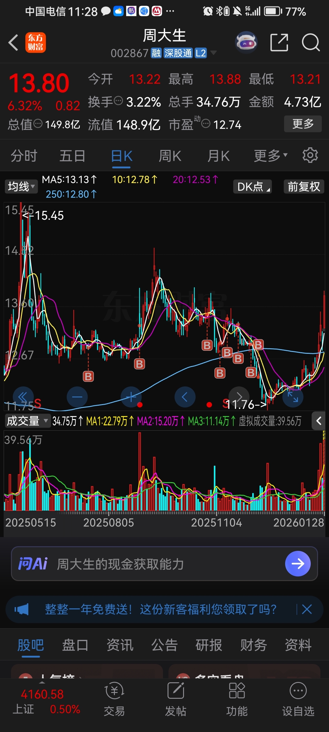 温馨提示: 1.根据《证券法》规定,禁止编造、传播虚假信息或者误导性信息,扰乱证券市场;2.用户在本社区发表的所有资料、言论等仅代表个人观点,与本网站立场无关,不对您构成任何投资建议。用户应基于自己的独立判断,自行决定证券投资并承担相应风险。《东方财富社区管理规定》