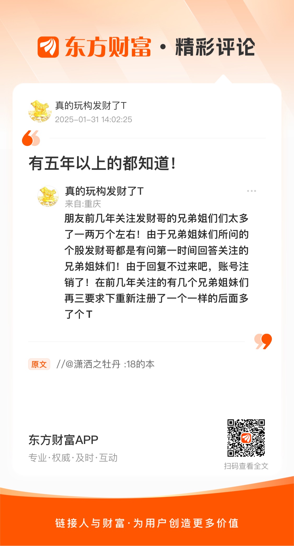 郑重声明:用户在财富号/股吧/博客等社区发表的所有信息(包括但不限于文字、视频、音频、数据及图表)仅代表个人观点,与本网站立场无关,不对您构成任何投资建议,据此操作风险自担。请勿相信代客理财、免费荐股和炒股培训等宣传内容,远离非法证券活动。请勿添加发言用户的手机号码、公众号、微博、微信及QQ等信息,谨防上当受骗!