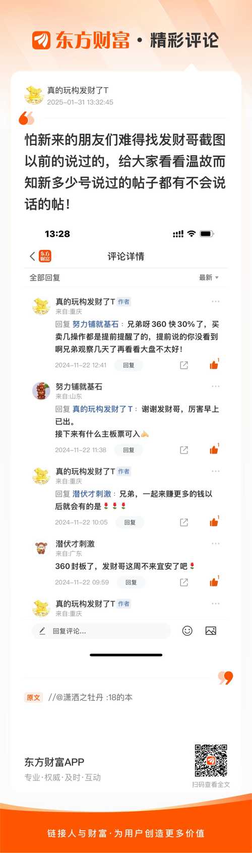 温馨提示: 1.根据《证券法》规定,禁止编造、传播虚假信息或者误导性信息,扰乱证券市场;2.用户在本社区发表的所有资料、言论等仅代表个人观点,与本网站立场无关,不对您构成任何投资建议。用户应基于自己的独立判断,自行决定证券投资并承担相应风险。《东方财富社区管理规定》