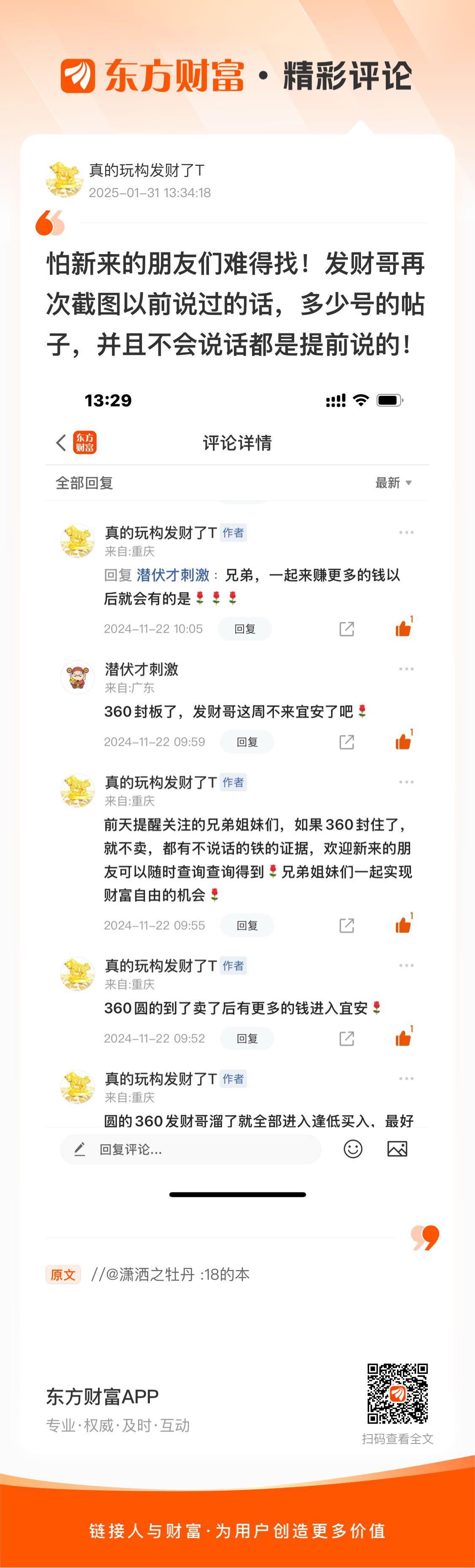 温馨提示: 1.根据《证券法》规定,禁止编造、传播虚假信息或者误导性信息,扰乱证券市场;2.用户在本社区发表的所有资料、言论等仅代表个人观点,与本网站立场无关,不对您构成任何投资建议。用户应基于自己的独立判断,自行决定证券投资并承担相应风险。《东方财富社区管理规定》