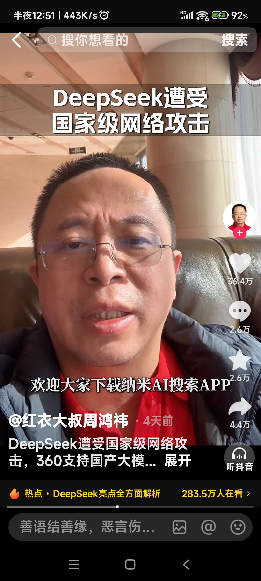 纳米搜索app已经对接了deepseek了 是事实 不是蹭
