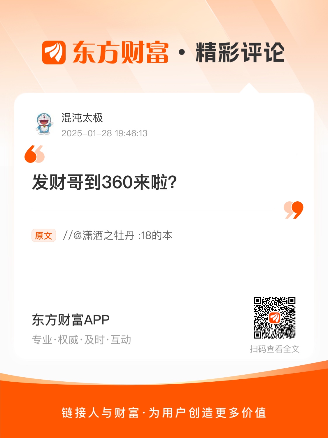 //@混沌太极 : 发财哥到360来啦?