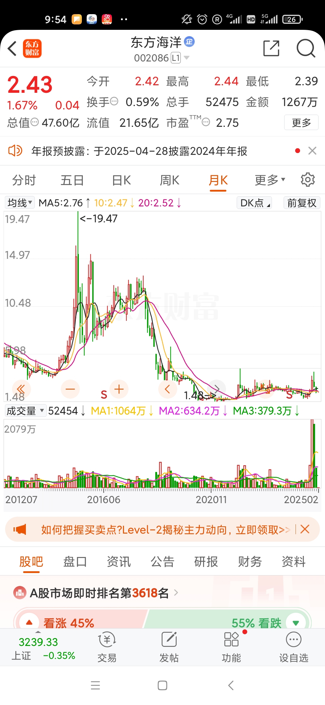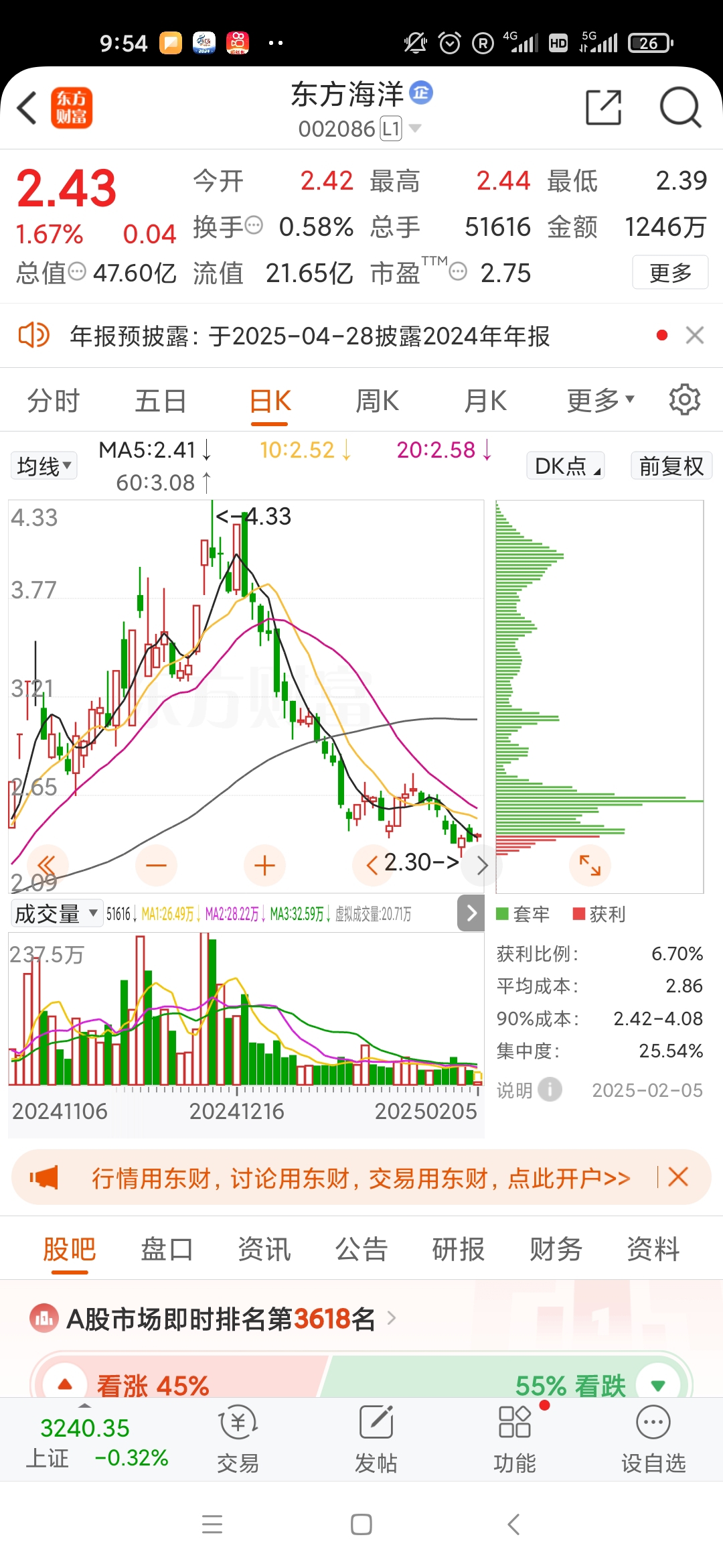 。。。东方海洋,已跌90%。散户别入坑。不支持融券收割机制,来主力,来游资