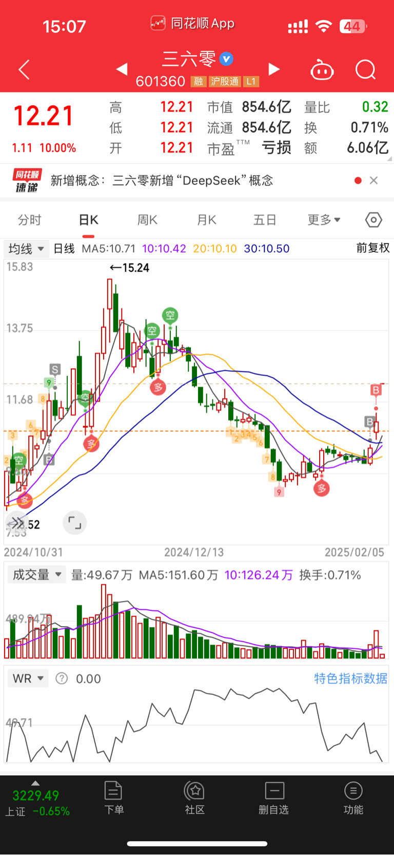 $三六零(SH601360)$ 节前两个交易日把仓位打满,赌了一把