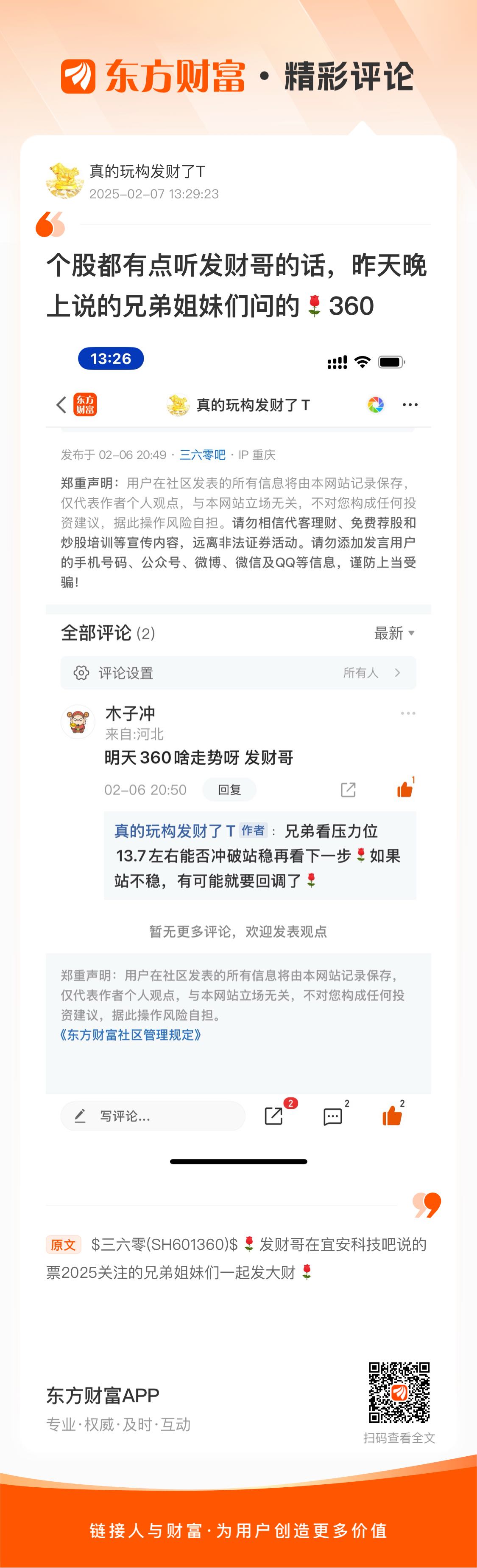 温馨提示: 1.根据《证券法》规定,禁止编造、传播虚假信息或者误导性信息,扰乱证券市场;2.用户在本社区发表的所有资料、言论等仅代表个人观点,与本网站立场无关,不对您构成任何投资建议。用户应基于自己的独立判断,自行决定证券投资并承担相应风险。《东方财富社区管理规定》