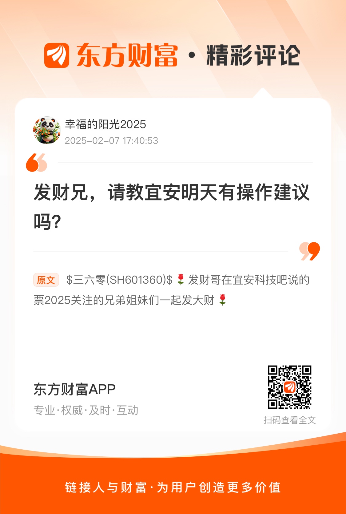 $三六零(SH601360)$  发财哥在宜安科技吧说的票2025关注的兄弟姐妹们一起发大财
