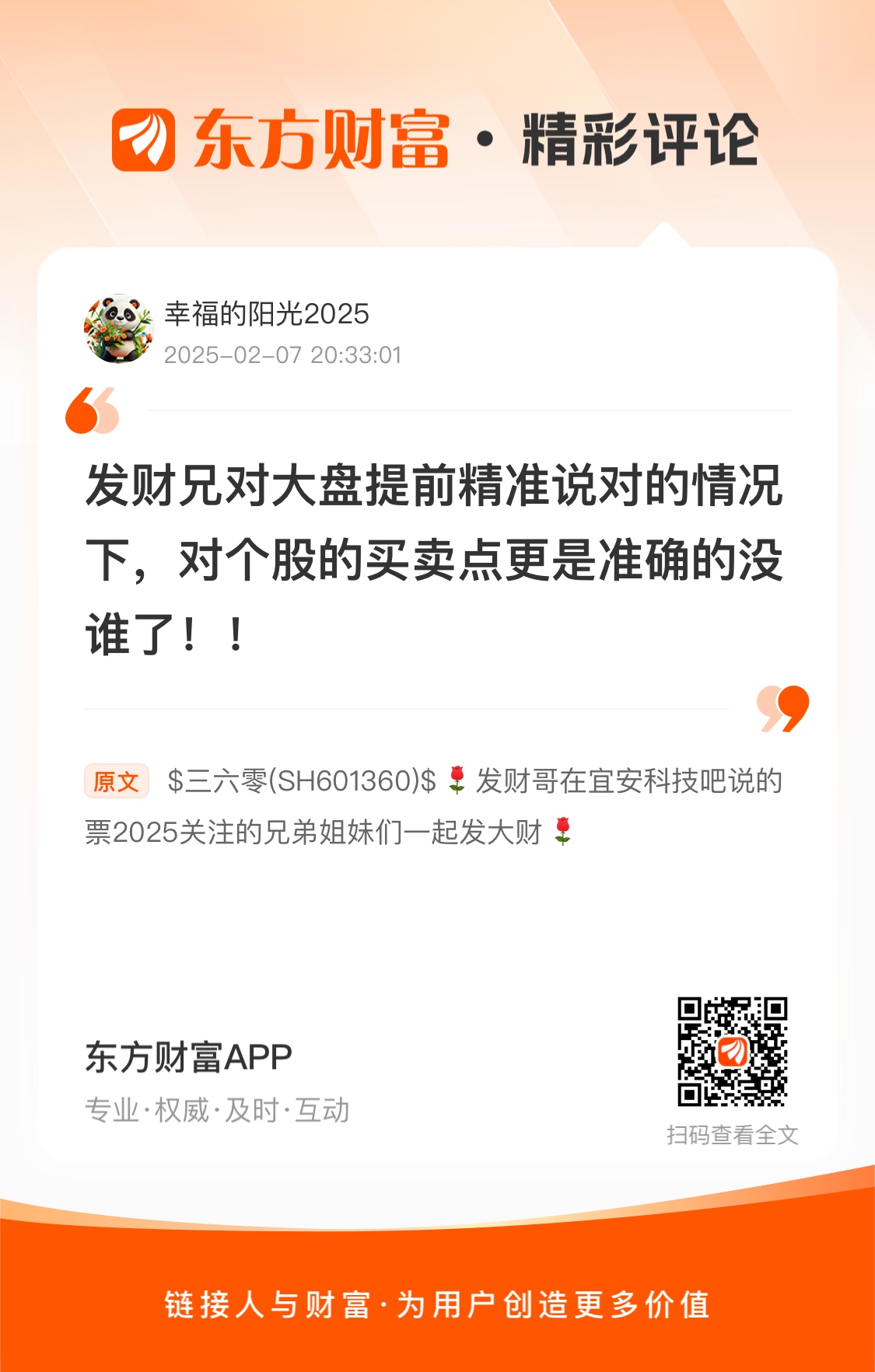 $三六零(SH601360)$  发财哥在宜安科技吧说的票2025关注的兄弟姐妹们一起发大财