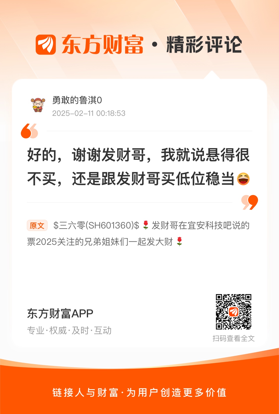 $三六零(SH601360)$  发财哥在宜安科技吧说的票2025关注的兄弟姐妹们一起发大财